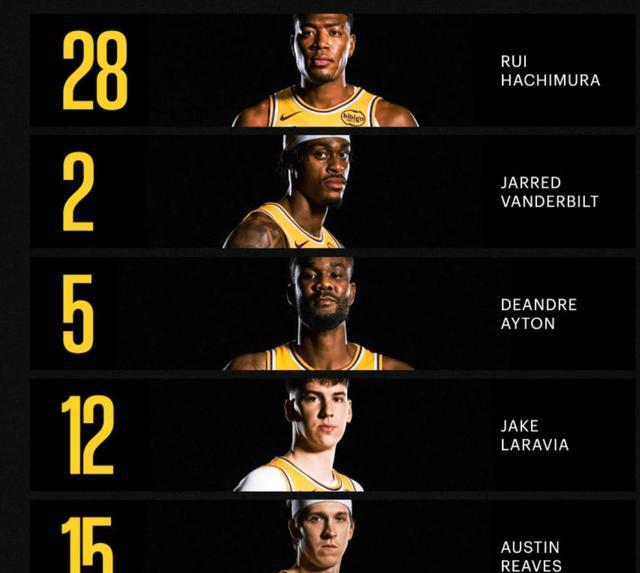 首发阵容方面,湖人队这边,排出的首发五人组为:奥斯汀-里夫斯、杰克-拉拉维亚、德安德烈-艾顿、贾里德-范德比尔特和八村垒;太阳队这边,首发阵容则为:德文-布克、格雷森-阿伦、瑞安-邓恩、狄龙-布鲁克斯和奥索-伊戈达罗。