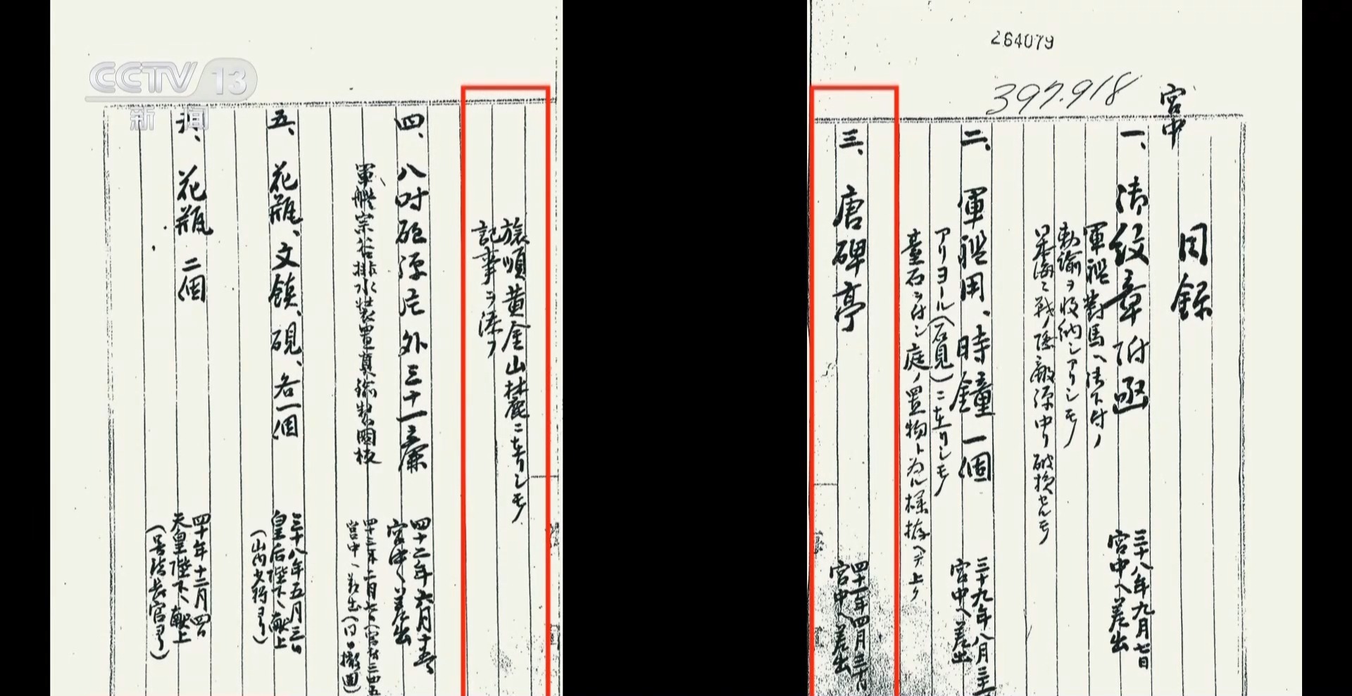 一百多年来,被偷走的唐鸿胪井碑一直被秘密地藏在日本皇宫深处不让人看见。事实上,唐鸿胪井碑只是日本掠夺中国文物的冰山一角,从甲午战争到侵华战争,非法流失到日本的中国文物数以万计,仅仅在日本皇宫内,就专门设有五座建筑,收藏不同时期从中国掠夺来的所谓“战利品”,在日本的几大博物馆,来自中国的文物同样占据了重要位置。这一件件的文物,每一件都是沾满战争鲜血的侵略罪证。