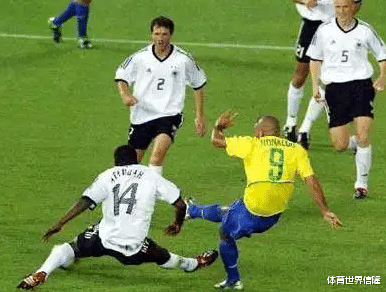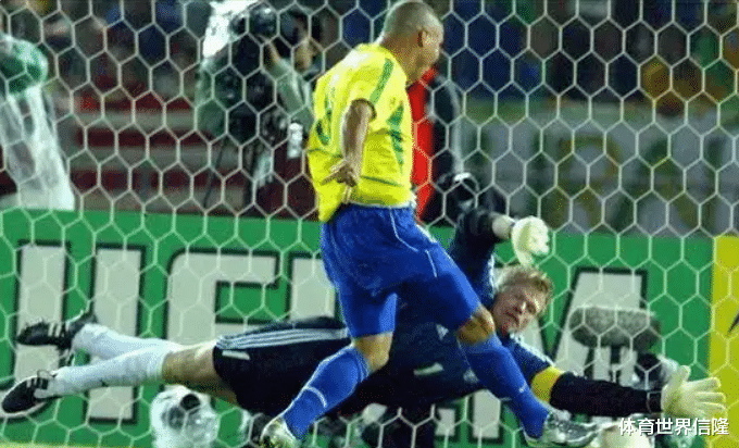 面对巅峰卡恩,当时的第一门神,罗纳尔多独中两元,2-0锁定巴西五星霸业